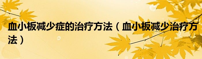 血小板减少症的治疗方法(血小板减少治疗方法),求路过的大神留个言,帮个忙!