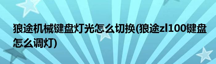您好,蔡蔡就为大家解答关于狼途机械键盘灯光怎么切换,狼途zl100键盘怎么调灯相信很多小伙伴还不知道,现在让我们一起来看看吧!