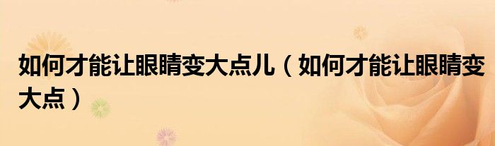 大家好,今天小帅来为大家解答以上的问题。如何才能让眼睛变大点儿,如何才能让眼睛变大点很多人还不知道,现在让我们一起来看看吧!