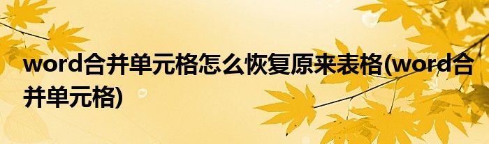 您好,蔡蔡就为大家解答关于word合并单元格怎么恢复原来表格,word合并单元格相信很多小伙伴还不知道,现在让我们一起来看看吧!
