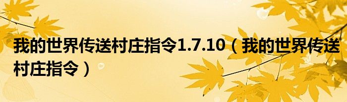 今天菲菲来为大家解答以上的问题。我的世界传送村庄指令1.7.10,我的世界传送村庄指令相信很多小伙伴还不知道,现在让我们一起来看看吧!