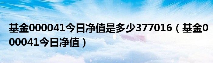 基金000041今日净值是多少377016(基金000041今日净值),跪求好心人,别让我孤军奋战!