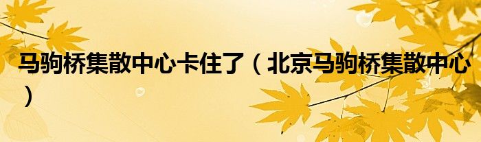 今天菲菲来为大家解答以上的问题。马驹桥集散中心卡住了,北京马驹桥集散中心相信很多小伙伴还不知道,现在让我们一起来看看吧!