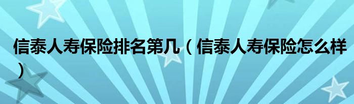今天菲菲来为大家解答以上的问题。信泰人寿保险排名第几,信泰人寿保险怎么样相信很多小伙伴还不知道,现在让我们一起来看看吧!