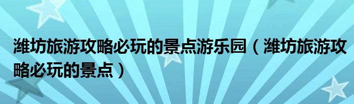 今天菲菲来为大家解答以上的问题。潍坊旅游攻略必玩的景点游乐园,潍坊旅游攻略必玩的景点相信很多小伙伴还不知道,现在让我们一起来看看吧!