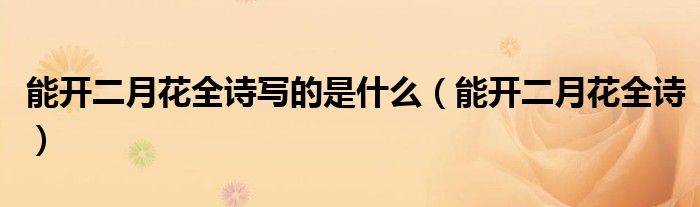 今天菲菲来为大家解答以上的问题。能开二月花全诗写的是什么,能开二月花全诗相信很多小伙伴还不知道,现在让我们一起来看看吧!