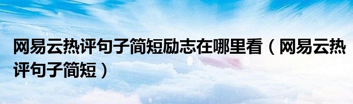 今天菲菲来为大家解答以上的问题。网易云热评句子简短励志在哪里看,网易云热评句子简短相信很多小伙伴还不知道,现在让我们一起来看看吧!