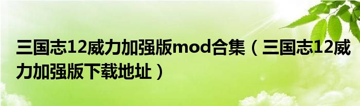 三国志12威力加强版mod合集(三国志12威力加强版下载地址),快急哭了,求给个思路吧!