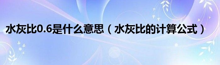 今天菲菲来为大家解答以上的问题。水灰比0.6是什么意思,水灰比的计算公式相信很多小伙伴还不知道,现在让我们一起来看看吧!