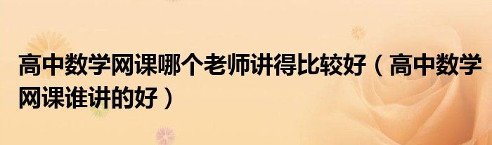 高中数学网课哪个老师讲得比较好(高中数学网课谁讲的好),有没有人能看懂这题?求帮忙!