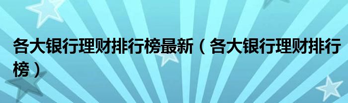 今天菲菲来为大家解答以上的问题。各大银行理财排行榜最新,各大银行理财排行榜相信很多小伙伴还不知道,现在让我们一起来看看吧!