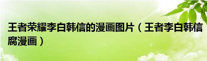 今天菲菲来为大家解答以上的问题。王者荣耀李白韩信的漫画图片,王者李白韩信腐漫画相信很多小伙伴还不知道,现在让我们一起来看看吧!
