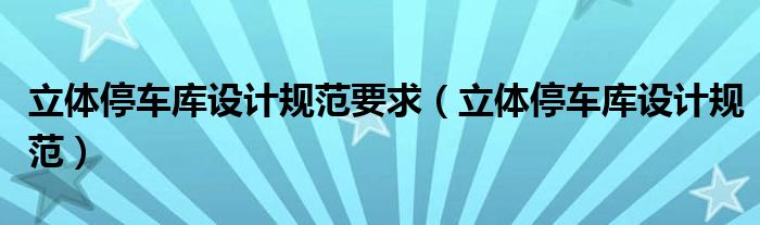今天菲菲来为大家解答以上的问题。立体停车库设计规范要求,立体停车库设计规范相信很多小伙伴还不知道,现在让我们一起来看看吧!
