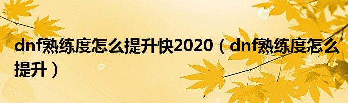dnf熟练度怎么提升快2020(dnf熟练度怎么提升),求大佬赐我一个答案,感谢!