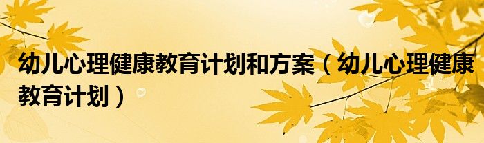 今天菲菲来为大家解答以上的问题。幼儿心理健康教育计划和方案,幼儿心理健康教育计划相信很多小伙伴还不知道,现在让我们一起来看看吧!