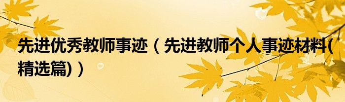 今天菲菲来为大家解答以上的问题。先进优秀教师事迹,先进教师个人事迹材料(精选篇)相信很多小伙伴还不知道,现在让我们一起来看看吧!