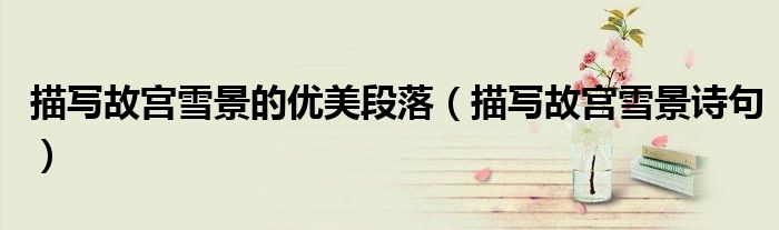今天菲菲来为大家解答以上的问题。描写故宫雪景的优美段落,描写故宫雪景诗句相信很多小伙伴还不知道,现在让我们一起来看看吧!
