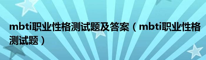 今天菲菲来为大家解答以上的问题。mbti职业性格测试题及答案,mbti职业性格测试题相信很多小伙伴还不知道,现在让我们一起来看看吧!