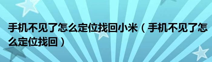 今天菲菲来为大家解答以上的问题。手机不见了怎么定位找回小米,手机不见了怎么定位找回相信很多小伙伴还不知道,现在让我们一起来看看吧!