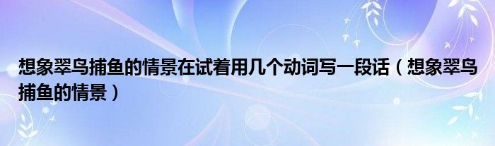 今天菲菲来为大家解答以上的问题。想象翠鸟捕鱼的情景在试着用几个动词写一段话,想象翠鸟捕鱼的情景相信很多小伙伴还不知道,现在让我们一起来看看吧!