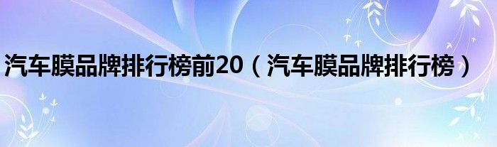 今天菲菲来为大家解答以上的问题。汽车膜品牌排行榜前20,汽车膜品牌排行榜相信很多小伙伴还不知道,现在让我们一起来看看吧!