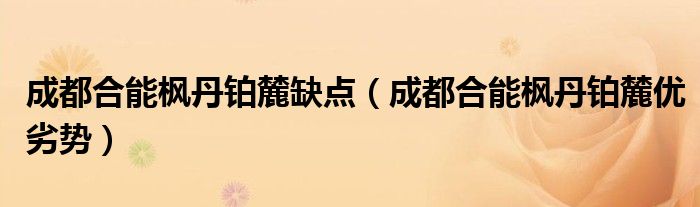 今天菲菲来为大家解答以上的问题。成都合能枫丹铂麓缺点,成都合能枫丹铂麓优劣势相信很多小伙伴还不知道,现在让我们一起来看看吧!