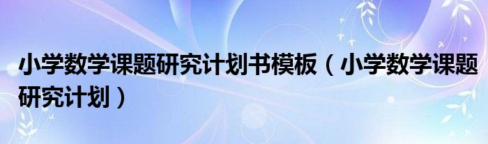 今天菲菲来为大家解答以上的问题。小学数学课题研究计划书模板,小学数学课题研究计划相信很多小伙伴还不知道,现在让我们一起来看看吧!