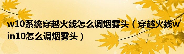 今天菲菲来为大家解答以上的问题。w10系统穿越火线怎么调烟雾头,穿越火线win10怎么调烟雾头相信很多小伙伴还不知道,现在让我们一起来看看吧!