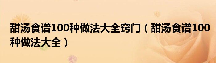 今天菲菲来为大家解答以上的问题。甜汤食谱100种做法大全窍门,甜汤食谱100种做法大全相信很多小伙伴还不知道,现在让我们一起来看看吧!