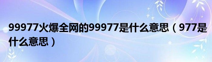 今天菲菲来为大家解答以上的问题。99977火爆全网的99977是什么意思,977是什么意思相信很多小伙伴还不知道,现在让我们一起来看看吧!