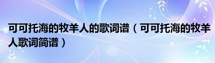 今天菲菲来为大家解答以上的问题。可可托海的牧羊人的歌词谱,可可托海的牧羊人歌词简谱相信很多小伙伴还不知道,现在让我们一起来看看吧!