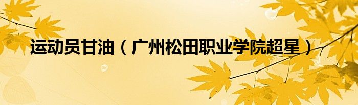 今天菲菲来为大家解答以上的问题。运动员甘油,广州松田职业学院超星相信很多小伙伴还不知道,现在让我们一起来看看吧!