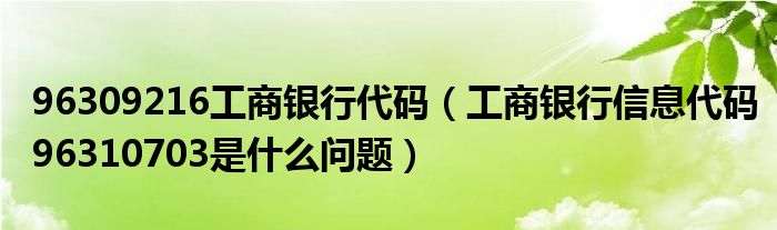 今天菲菲来为大家解答以上的问题。96309216工商银行代码,工商银行信息代码96310703是什么问题相信很多小伙伴还不知道,现在让我们一起来看看吧!