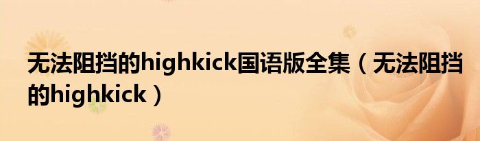 今天菲菲来为大家解答以上的问题。无法阻挡的highkick国语版全集,无法阻挡的highkick相信很多小伙伴还不知道,现在让我们一起来看看吧!