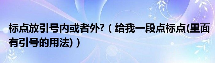 今天菲菲来为大家解答以上的问题。标点放引号内或者外?,给我一段点标点(里面有引号的用法)相信很多小伙伴还不知道,现在让我们一起来看看吧!