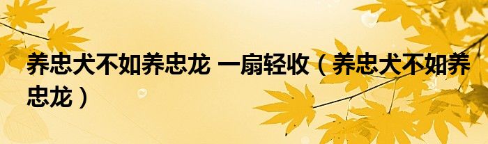 今天菲菲来为大家解答以上的问题。养忠犬不如养忠龙 一扇轻收,养忠犬不如养忠龙相信很多小伙伴还不知道,现在让我们一起来看看吧!
