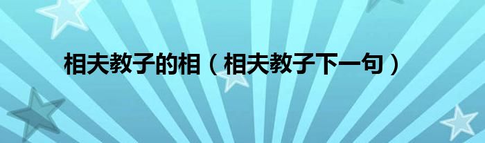 今天菲菲来为大家解答以上的问题。相夫教子的相,相夫教子下一句相信很多小伙伴还不知道,现在让我们一起来看看吧!