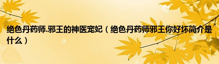 今天菲菲来为大家解答以上的问题。绝色丹药师.邪王的神医宠妃,绝色丹药师邪王你好坏简介是什么相信很多小伙伴还不知道,现在让我们一起来看看吧!
