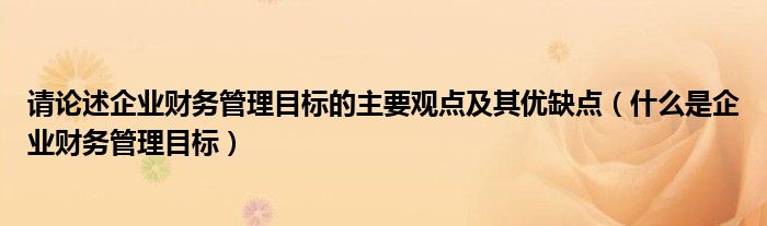 今天菲菲来为大家解答以上的问题。请论述企业财务管理目标的主要观点及其优缺点,什么是企业财务管理目标相信很多小伙伴还不知道,现在让我们一起来看看吧!