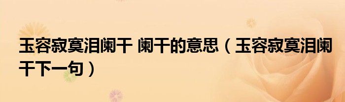 今天菲菲来为大家解答以上的问题。玉容寂寞泪阑干 阑干的意思,玉容寂寞泪阑干下一句相信很多小伙伴还不知道,现在让我们一起来看看吧!