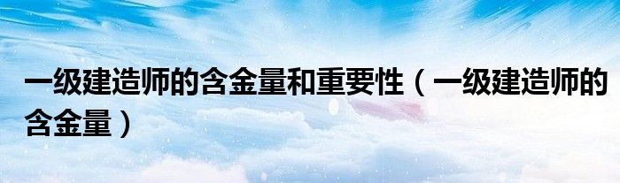 今天菲菲来为大家解答以上的问题。一级建造师的含金量和重要性,一级建造师的含金量相信很多小伙伴还不知道,现在让我们一起来看看吧!
