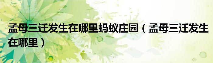 今天菲菲来为大家解答以上的问题。孟母三迁发生在哪里蚂蚁庄园,孟母三迁发生在哪里相信很多小伙伴还不知道,现在让我们一起来看看吧!