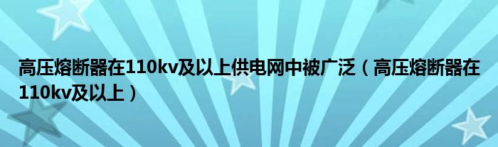 1、高压熔断器在110kv及以上供电网中被广泛应用。