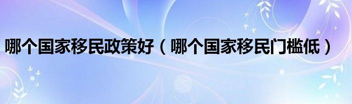 哪个国家移民政策好(哪个国家移民门槛低),蹲一个懂行的,求解答求解答!