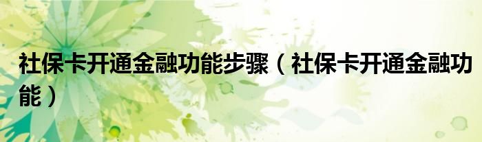 今天菲菲来为大家解答以上的问题。社保卡开通金融功能步骤,社保卡开通金融功能相信很多小伙伴还不知道,现在让我们一起来看看吧!