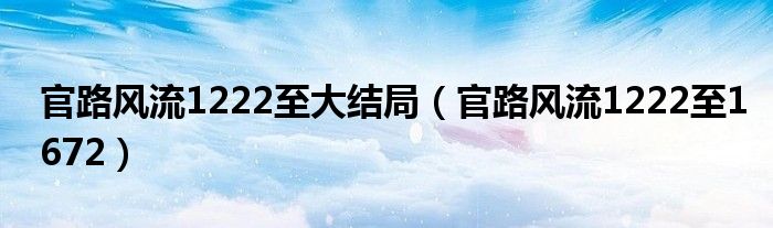 今天菲菲来为大家解答以上的问题。官路风流1222至大结局,官路风流1222至1672相信很多小伙伴还不知道,现在让我们一起来看看吧!