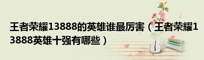 今天菲菲来为大家解答以上的问题。王者荣耀13888的英雄谁最厉害,王者荣耀13888英雄十强有哪些相信很多小伙伴还不知道,现在让我们一起来看看吧!