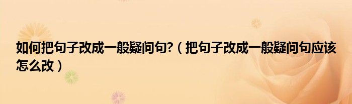 今天菲菲来为大家解答以上的问题。如何把句子改成一般疑问句?,把句子改成一般疑问句应该怎么改相信很多小伙伴还不知道,现在让我们一起来看看吧!