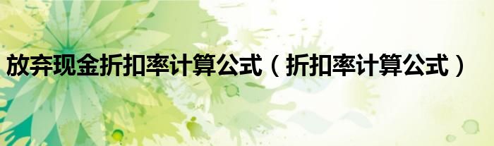 今天菲菲来为大家解答以上的问题。放弃现金折扣率计算公式,折扣率计算公式相信很多小伙伴还不知道,现在让我们一起来看看吧!