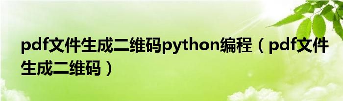 今天菲菲来为大家解答以上的问题。pdf文件生成二维码python编程,pdf文件生成二维码相信很多小伙伴还不知道,现在让我们一起来看看吧!